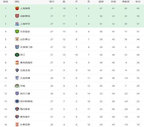 昨晚,争冠三强率先出战,上海海港客场4-3逆转青岛海牛,成都蓉城主场3-1击败梅州客家,上海申花客场2-1逆转青岛西海岸,这样积分榜前三还是相差3分,上海海港以2分优势力压成都蓉城,继续领跑积分榜,争冠悬念仍在。