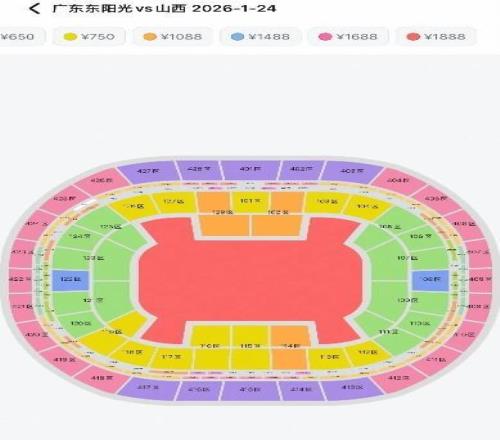 有媒体截图发布广东队主场的票价情况,主场对阵山西队,我们看到区间为500、600、650、750、1088、1488、1688、1888,达到8种价格。