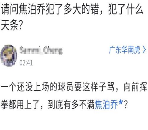 相比之下,焦泊乔在本场比赛的遭遇和陈家政相比,也是不遑多让的,其实他比小陈还更惨,第一节焦泊乔什么也没干,突然就遭到了杜锋的一顿臭骂。