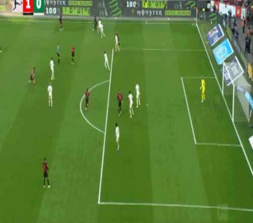 第37分钟,先拔头筹,巴斯克斯禁区推射远角破门,勒沃库森1-0