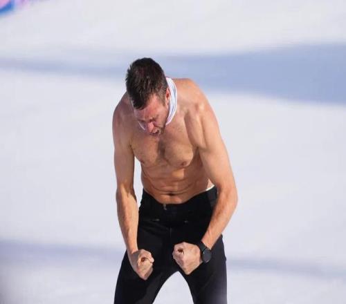 米兰冬奥会单板滑雪男子平行大回转决赛,40岁的奥地利老将本杰明·卡尔成功卫冕后,他脱衣庆祝的瞬间让寒风中蒸腾的热气与肌肉线条,成了冰天雪地里最灼热的图腾。