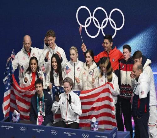 花样滑冰团体赛,美国队以1分的优势,力压日本队夺得冠军,铜牌由意大利队获得。