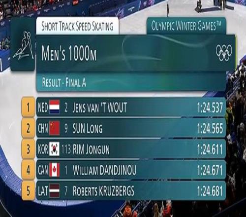 极限逆转!孙龙获得短道速滑男子1000米银牌!