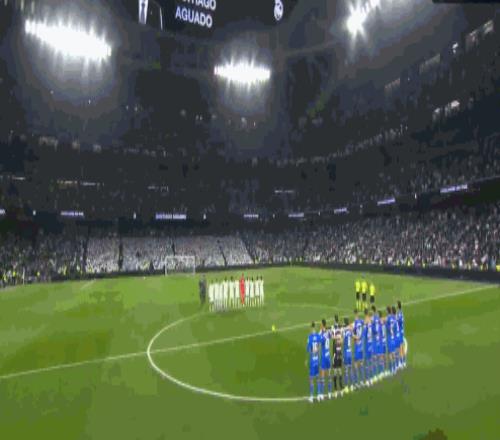赛前仪式,双方球员为去世的皇马董事会成员阿瓜多默哀